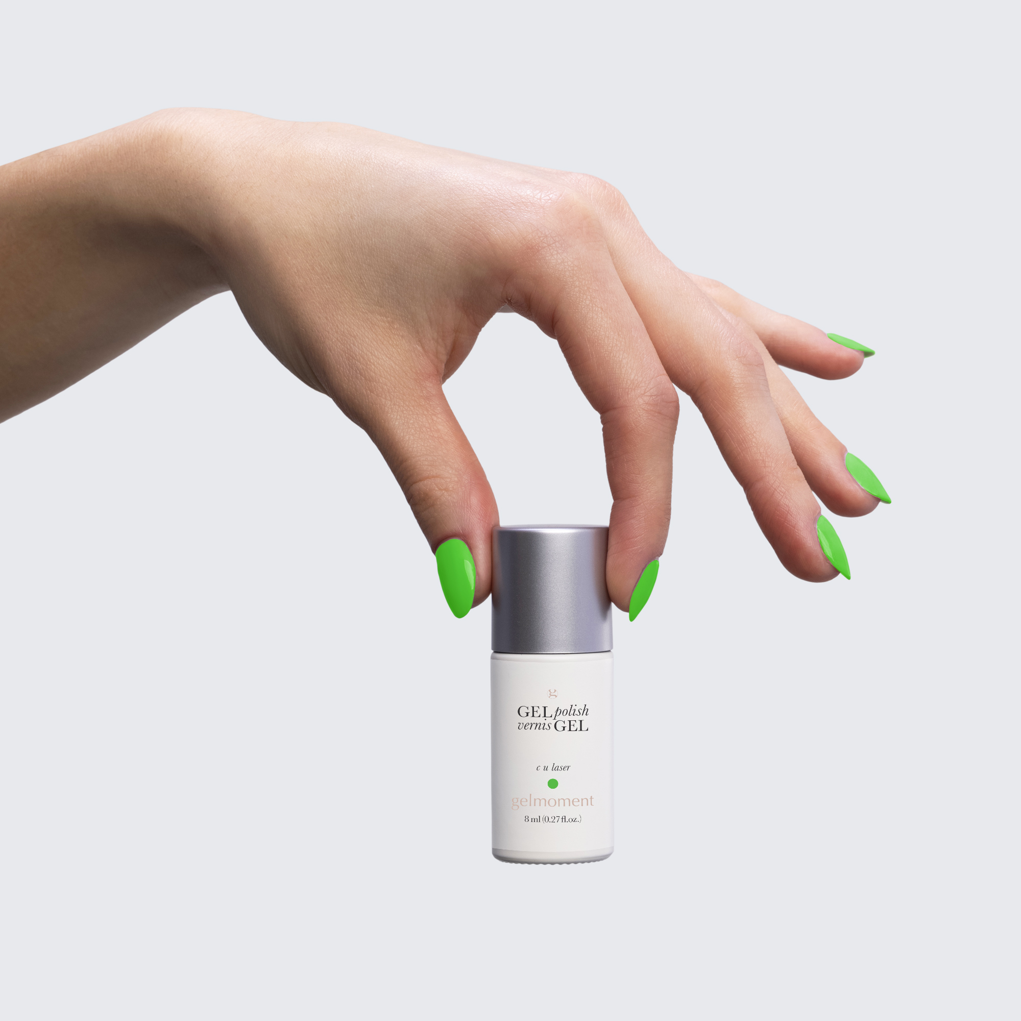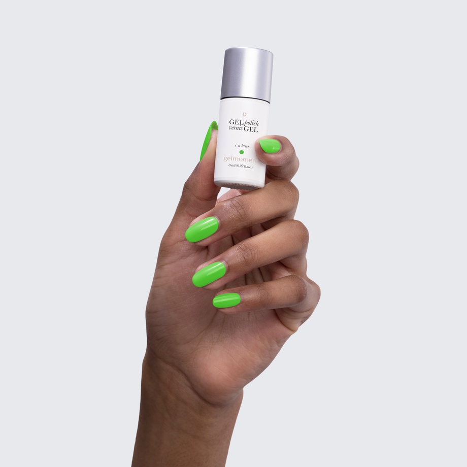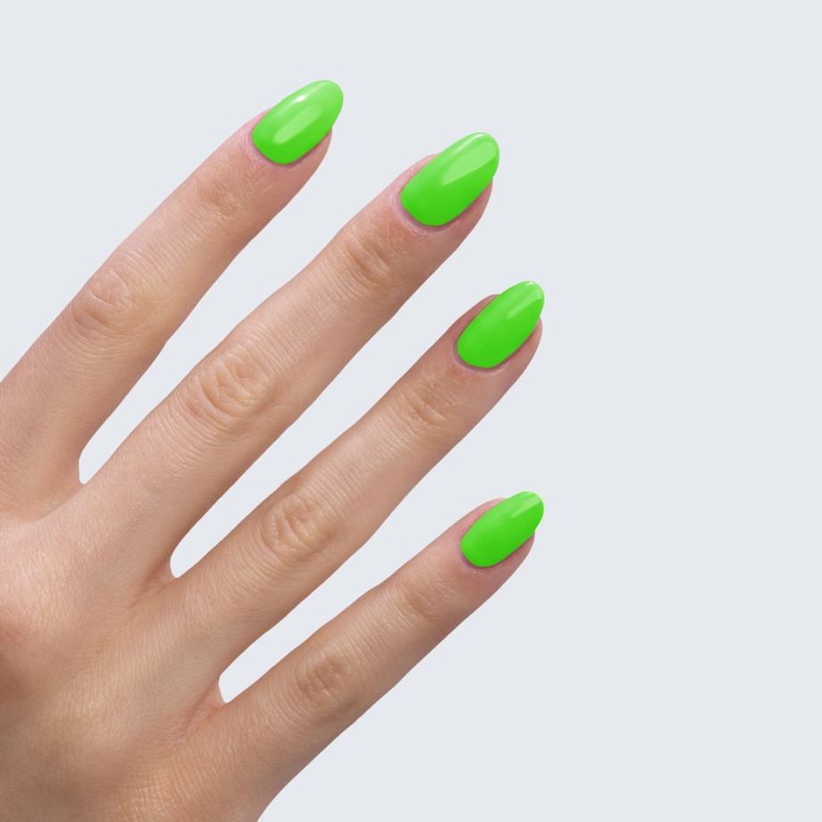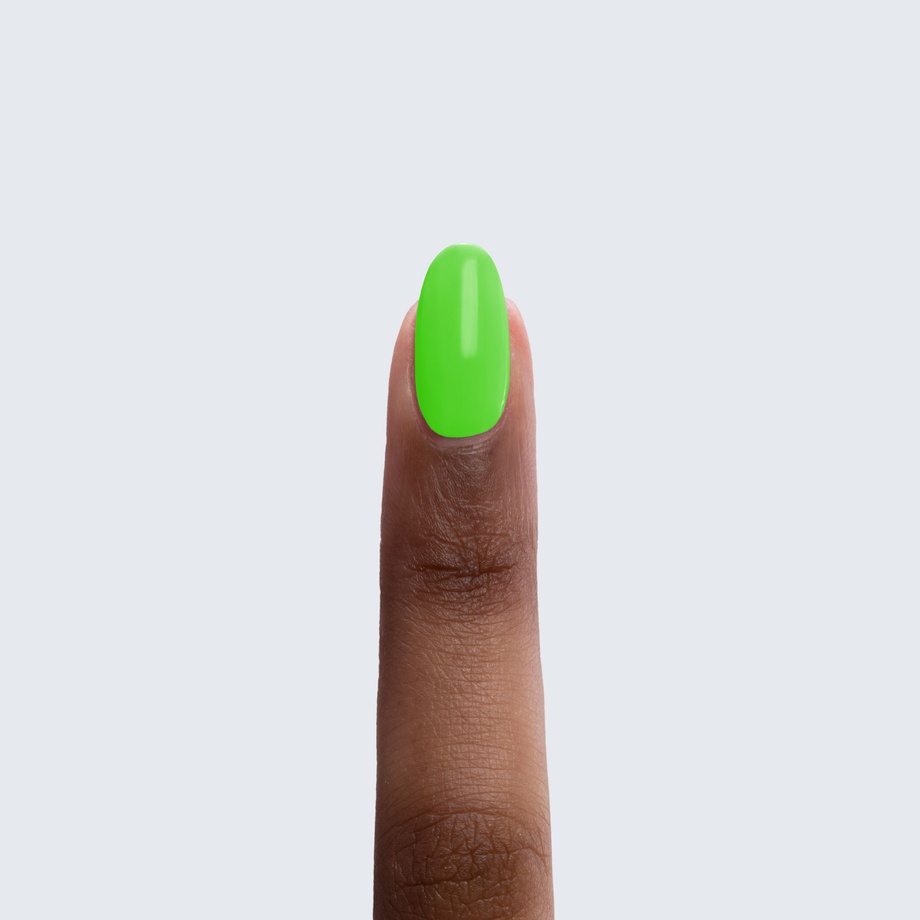 Neon green. Bright. Cool undertone. Medium opacity (slightly translucent).