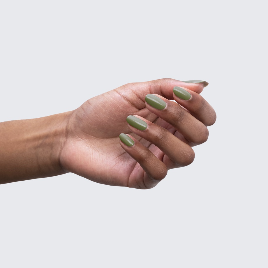 Take a walk in the woods with an olive-green manicure to match.