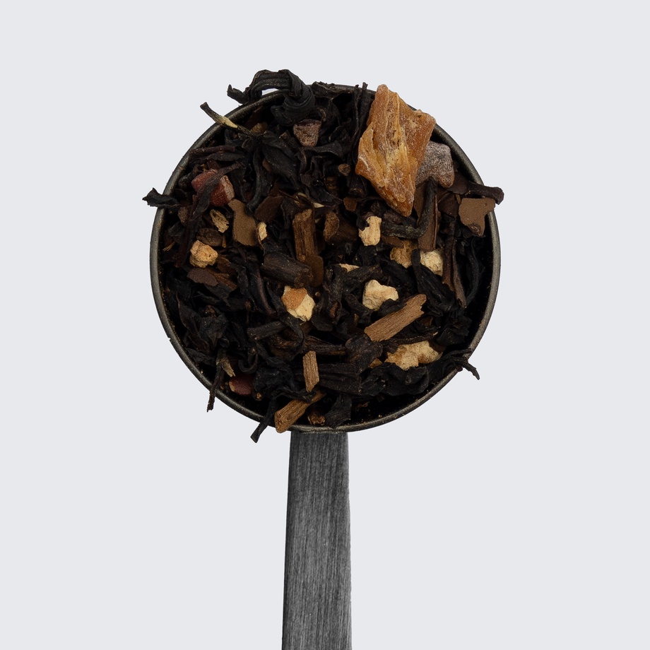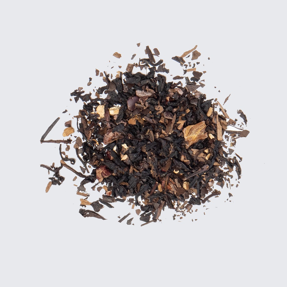 Black tea, roasted mate, chicory, cocoa nibs, sweet potatoes, ashwagandha, walnut extract.